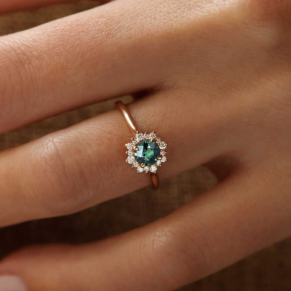 Le diamant taille poire combine la rondeur et l'élancement. Porté pointe vers les ongles, il est l'une des tailles les plus originales et flatteuses pour une bague de fiançailles.