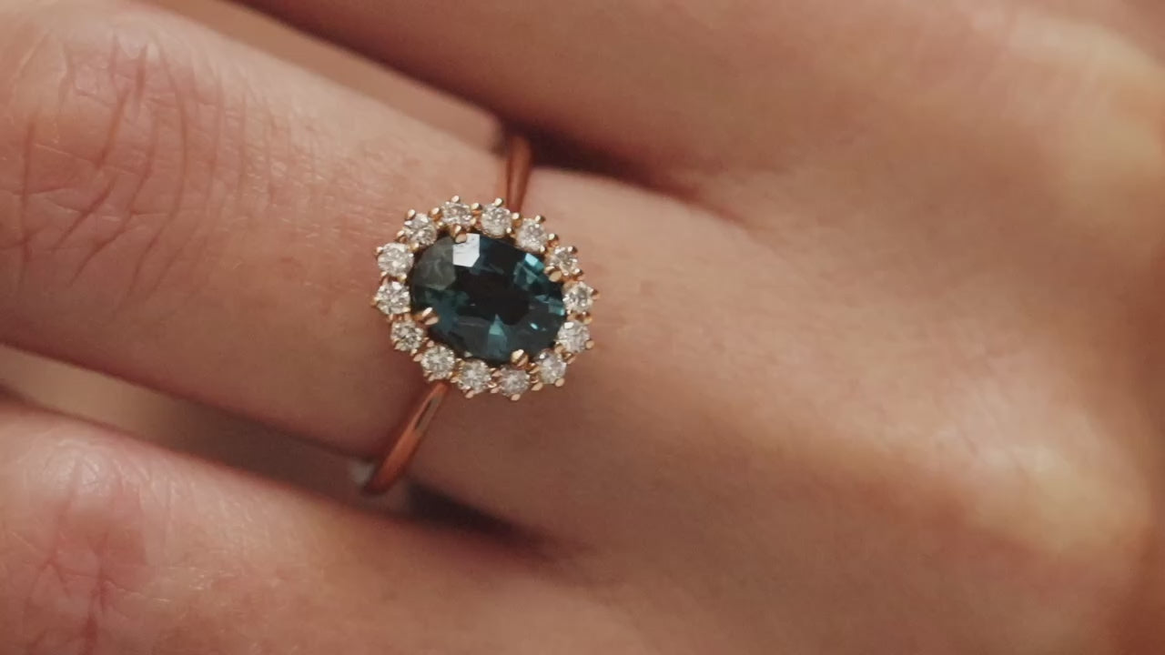 Bague marguerite saphir vert bleu en or 18 carats
